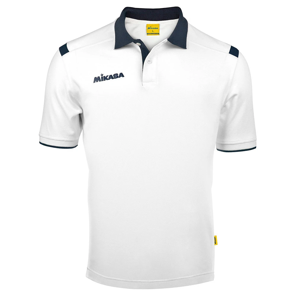 Поло MIKASA классического кроя с контрастными вставками на плечах и рукавах, в тон воротничку, подходит для активного отдыха и повседневной носки. Воротничок застегивается на 2 прозрачные пуговицы.