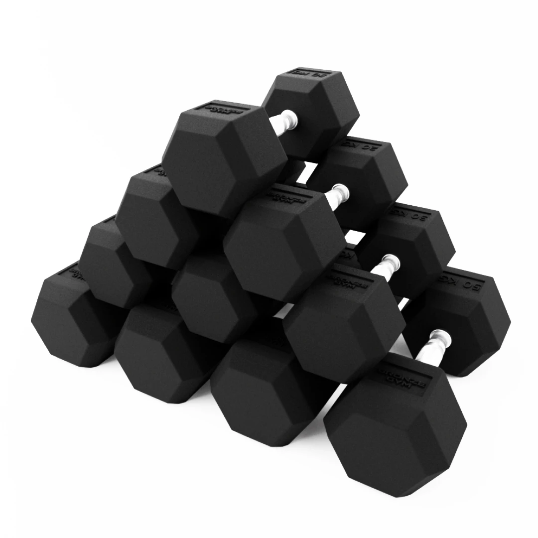 Набор гексагональных обрезиненных гантелей BRONZE GYM 27,5-50 кг - 10 пар, шаг 2,5 кг