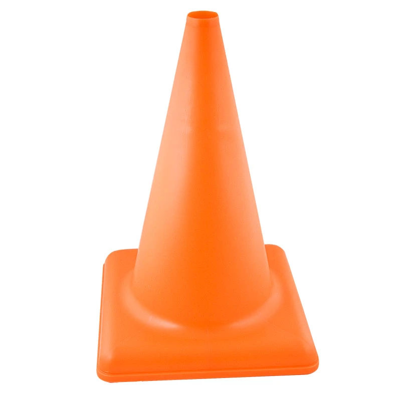 Конус тренировочный с отверстием для установки штанги изготовлен из жесткого пластика.