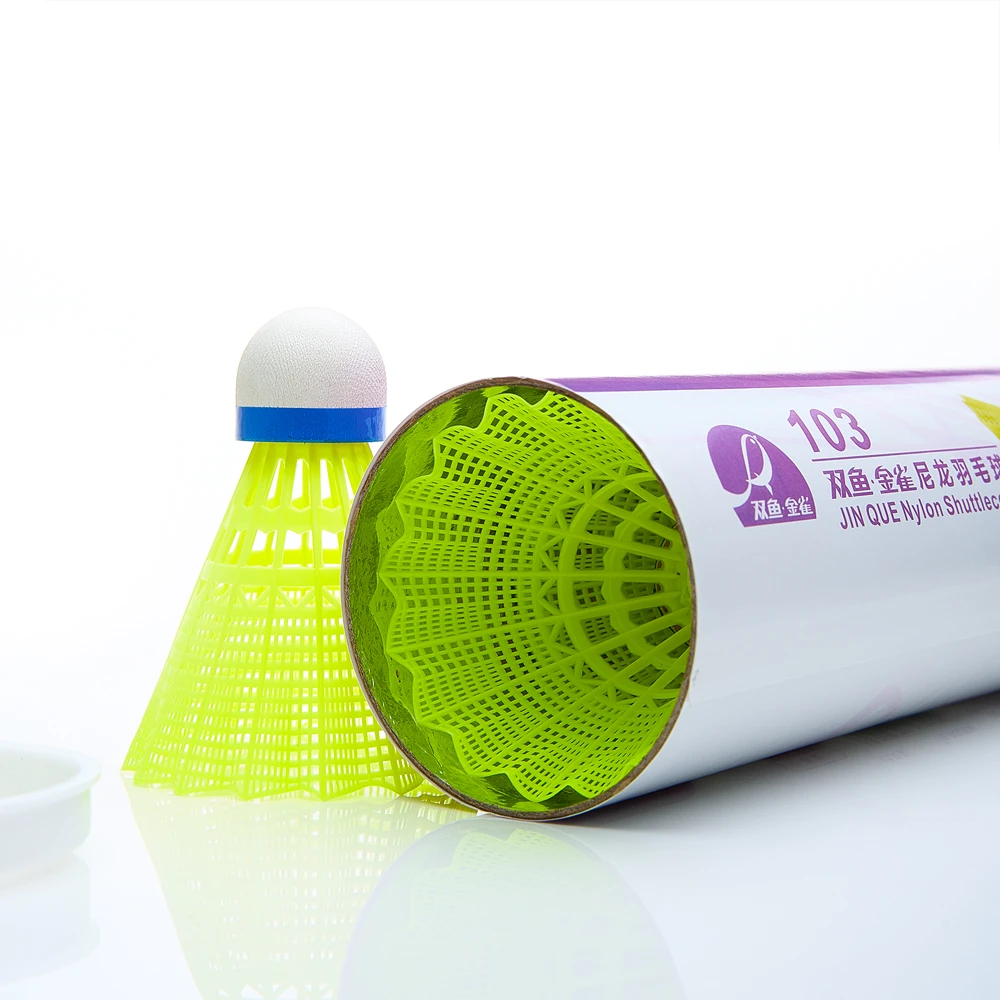 Воланы для бадминтона DOUBLE FISH JINQUE 103y ( нейлон/пробка), уп.6 шт. сред.скор., желтый