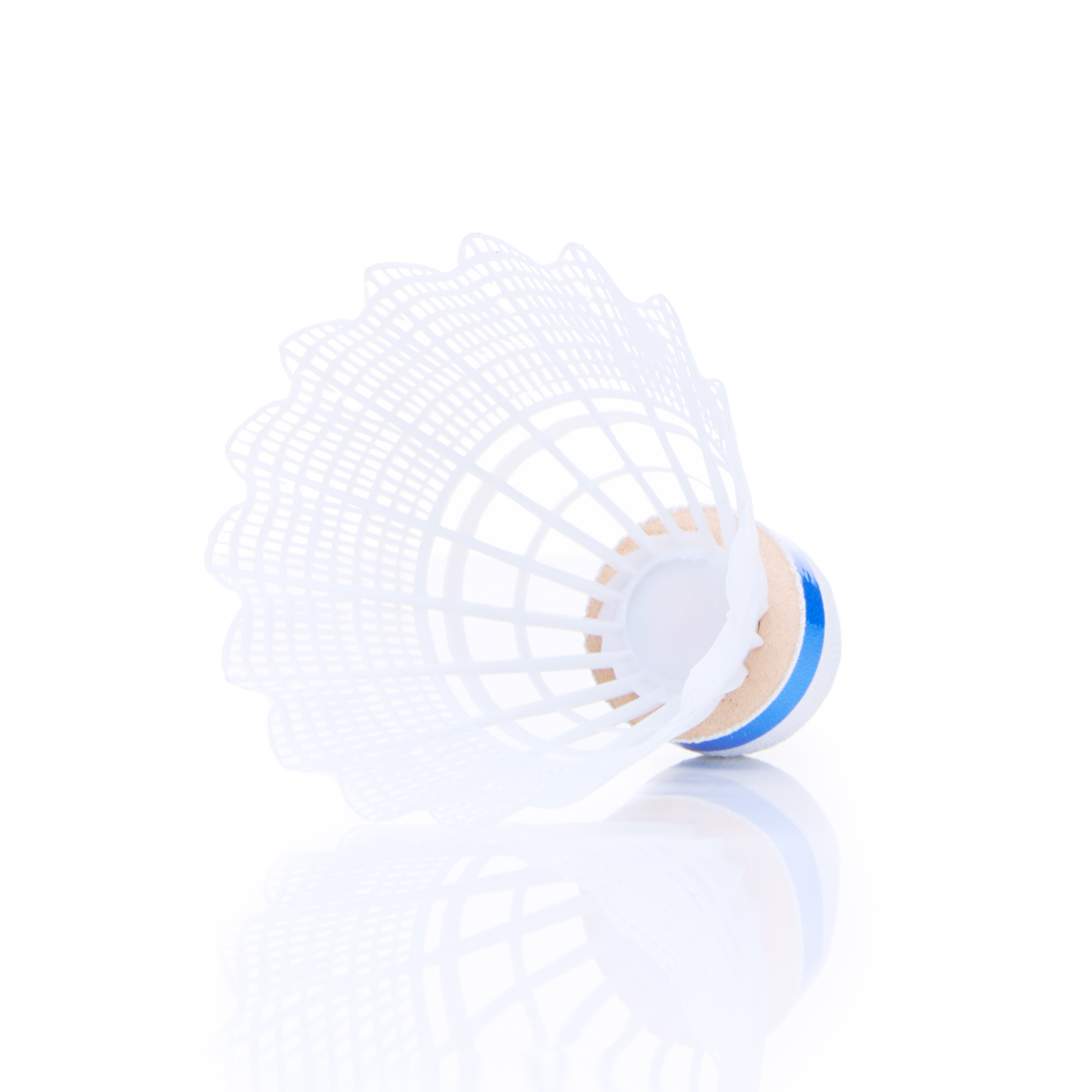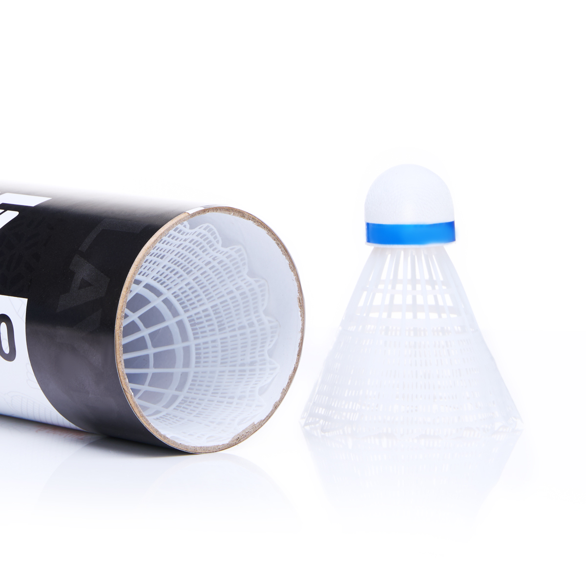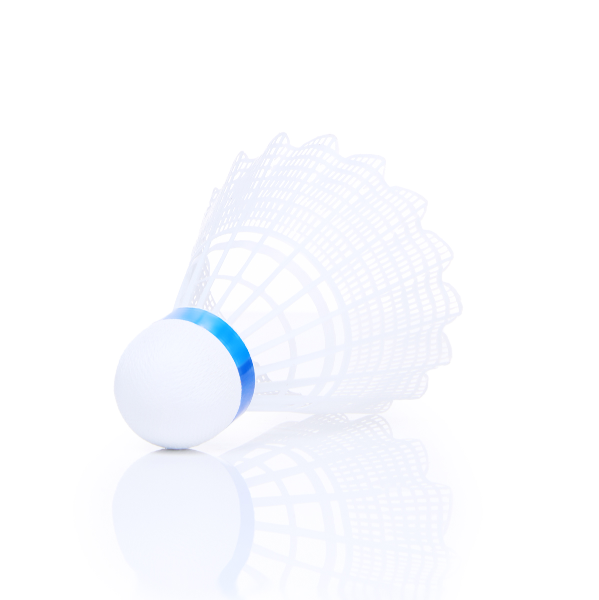 Волан TORRES 150, любительского уровня для игры в зале и на улице. Пластиковая юбка белого цвета. Пенопластовая "головка" волана, с индикаторной лентой синего цвета, что соответствует средней скорости, для игры при температуре от 12 до 23 °С.