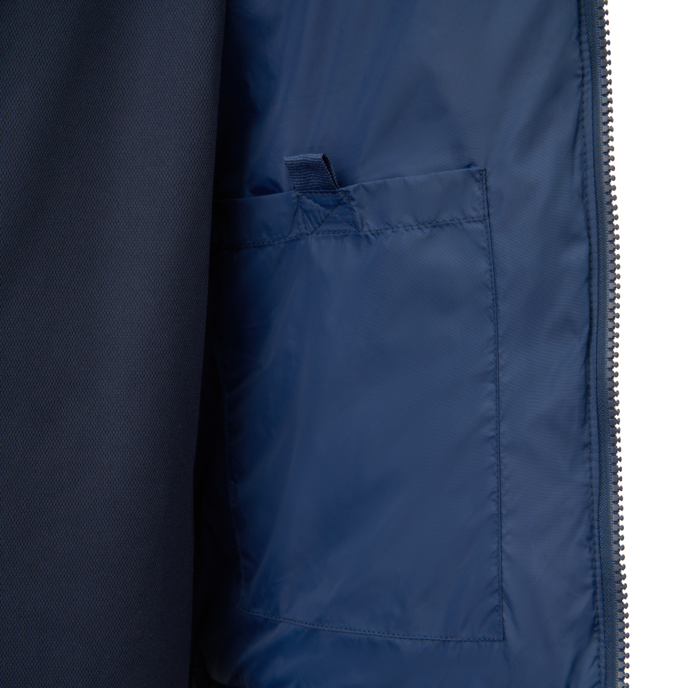 Материал куртки устойчив к разрывам и намоканию (water repellent). Высокий воротник, удобный капюшон и небольшие утягивающие манжеты нижней части рукава защищают от продувания.