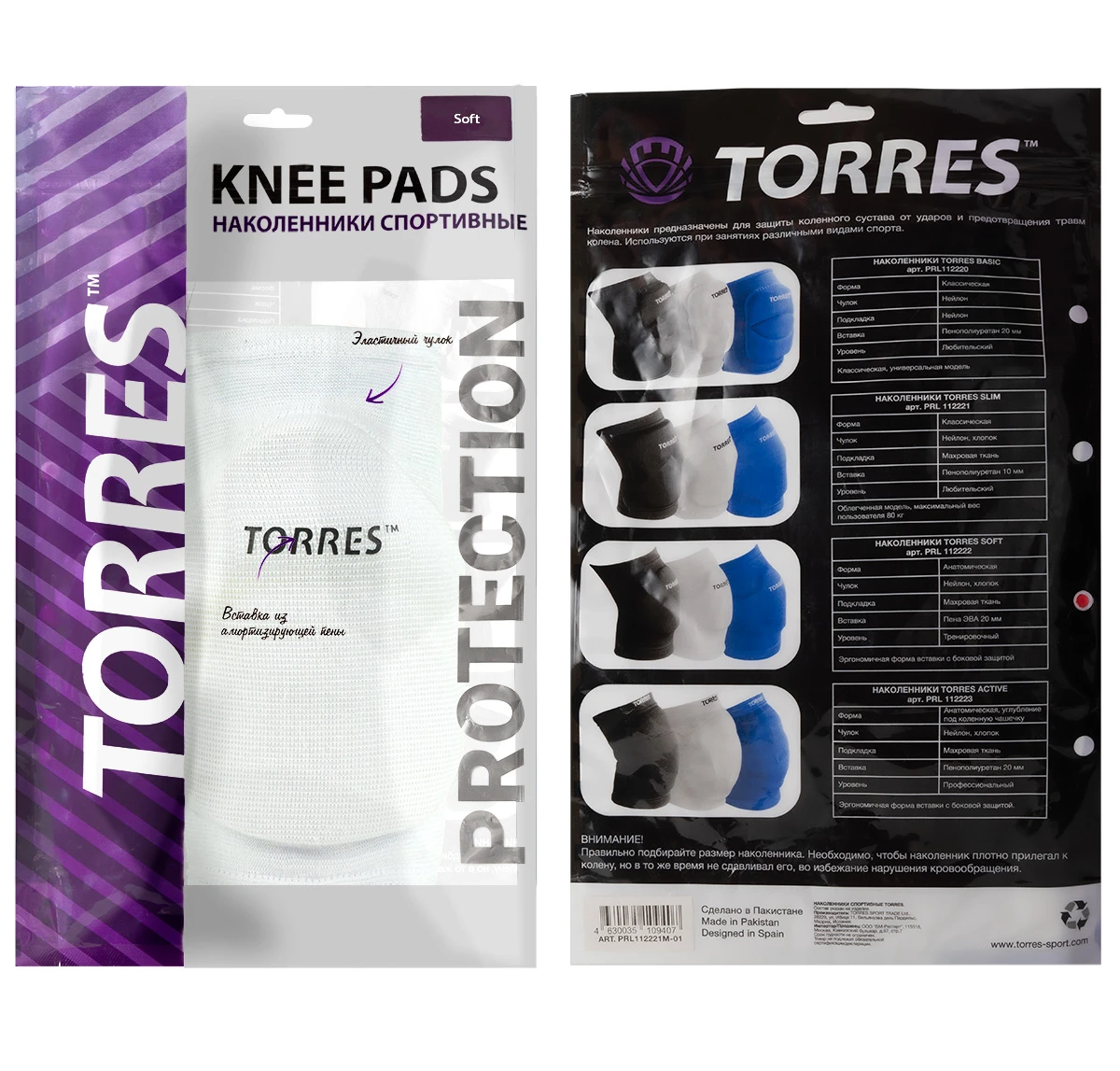 Краткое наименованиеНаколенники спортивные TORRES Soft, Размер s, Цвет Белый